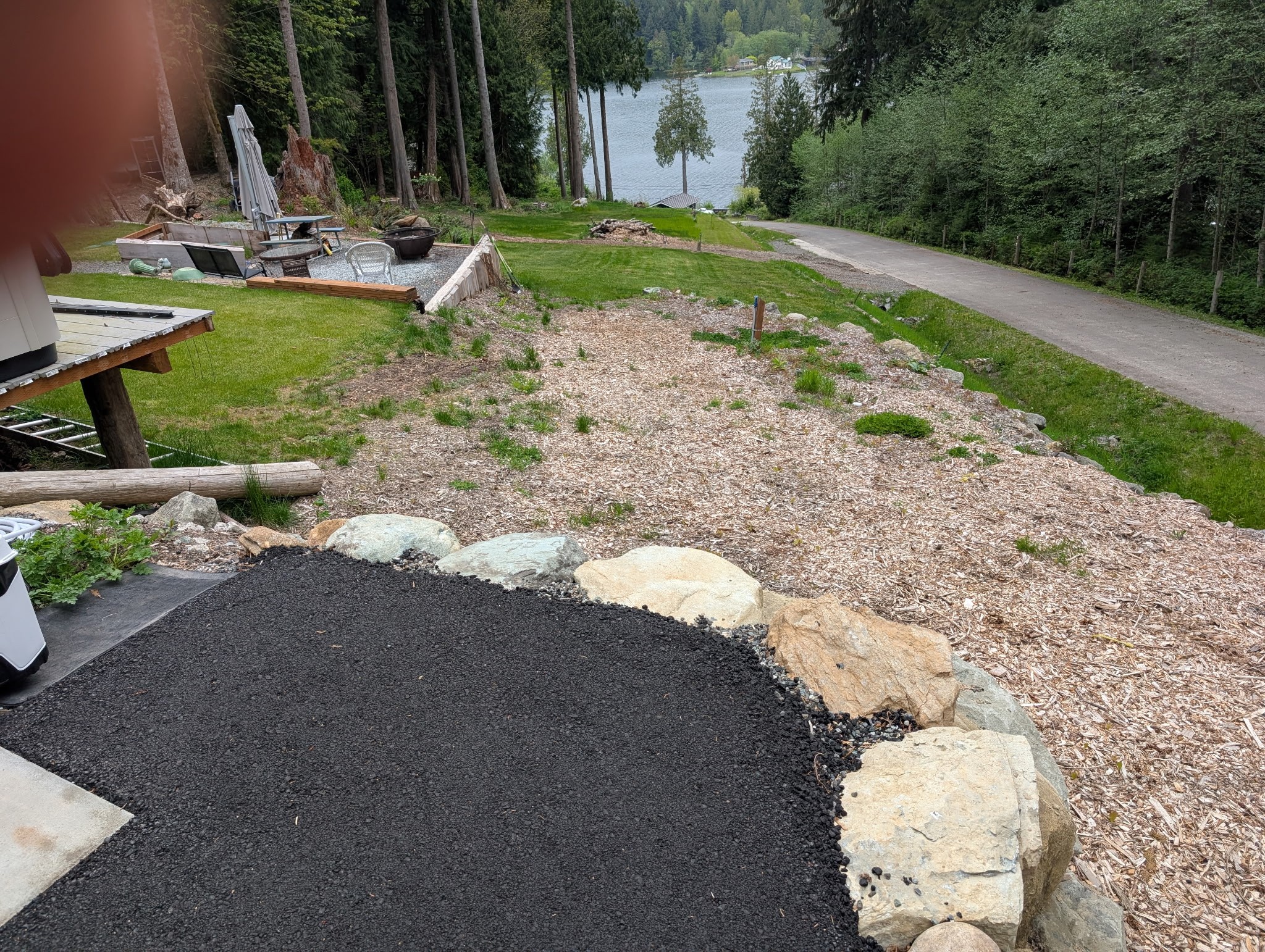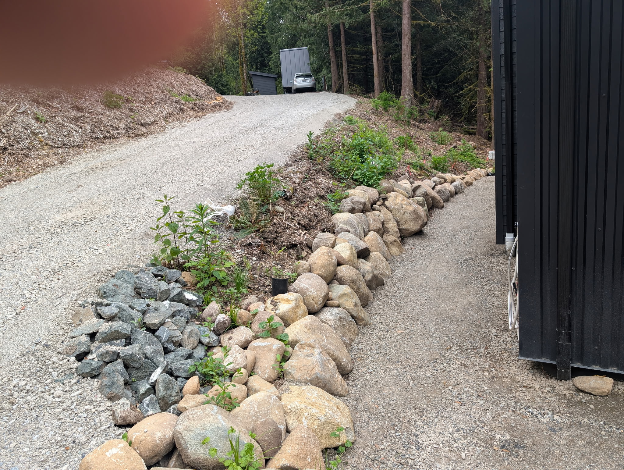 This site was completely undeveloped when we began. We installed the driveway, all necessary utilities, a pad for the mobile home, multiple rock retaining walls, and drainage solutions wherever needed. It was a fun and rewarding project on a steep hillside with many challenges along the way. In the end, Greg was very happy with the results!